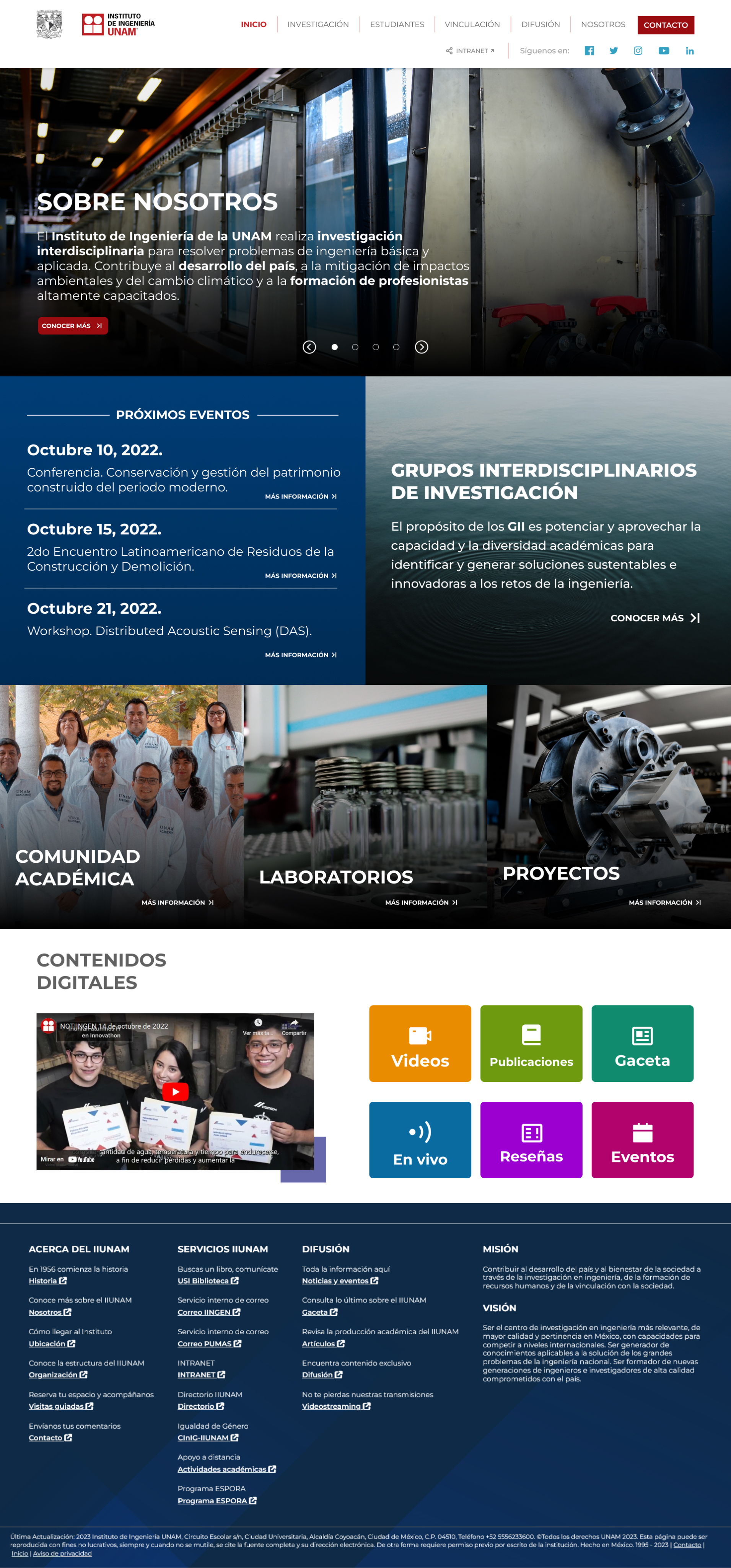The Engineering Institute of the National Autonomous University of Mexico (UNAM) recognizes the importance of online presence as a fundamental means to stay updated and provide a better experience to its users. Through its commitment to academic excellence and technological innovation, the Institute continues to drive research and development in science and engineering, promoting broader access to knowledge.