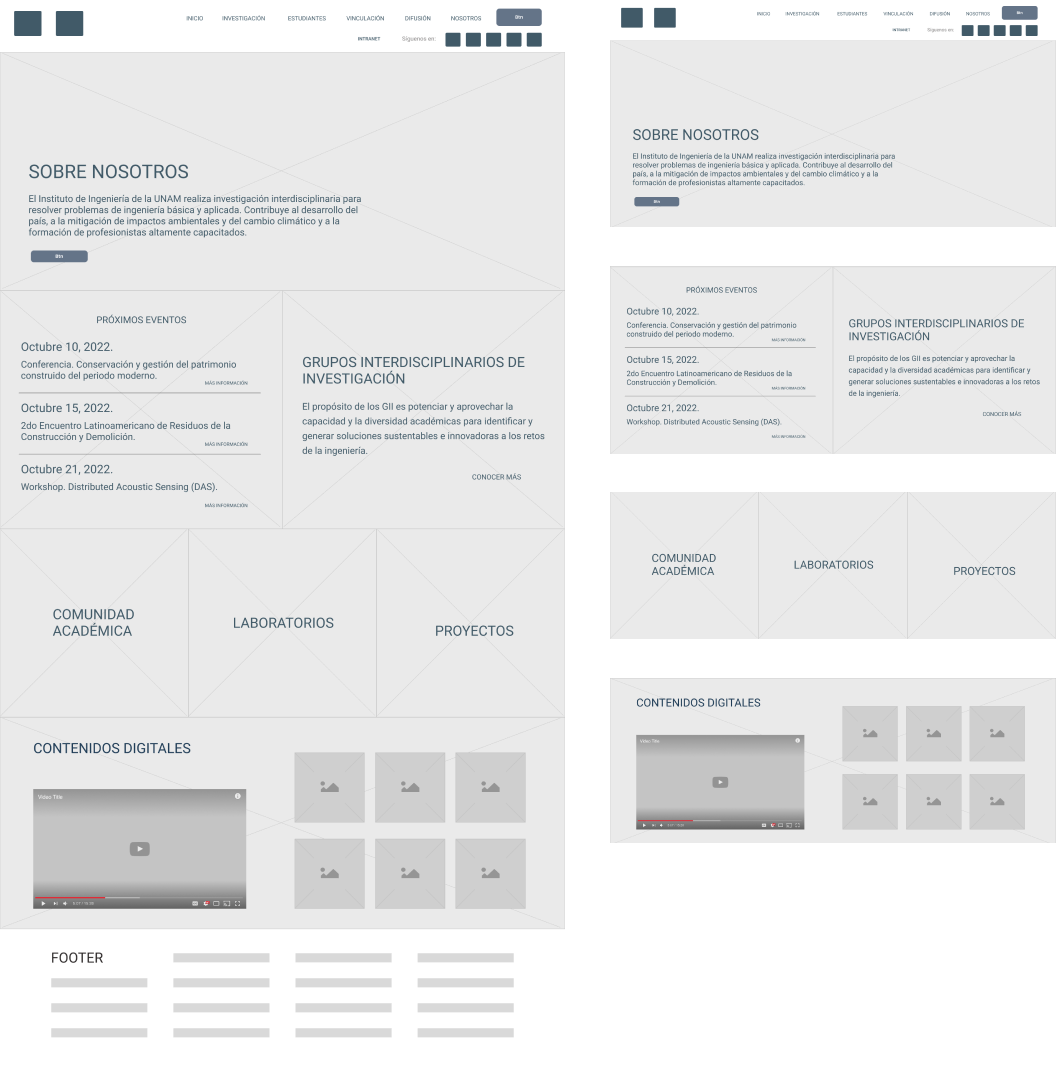 The decision has been made to completely redesign the homepage of the IIUNAM website, taking into account the main navigation developed in SharePoint. The goal is to optimize the space by implementing a modular system that allows users to scan through more options in less time and with reduced visual fatigue.